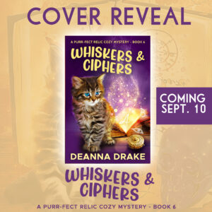 I’m thrilled to announce that Whiskers and Ciphers, Book 6 in the Purr-fect Relic Cozy Mystery series, will be releasing on September 10! This time, Rebecca Cuthbert and her adorable feline sidekick, Aneksi, find themselves knee-deep in secrets after a body turns up in the town’s historic fountain—just as an Egyptian antiquities conference comes to Citrus Grove. Ancient ciphers, cursed artifacts, and one very determined sleuth await! Preorders are officially open, so if you’d like to reserve your copy early (and make Aneksi purr with approval), you can grab it now. Mystery, mischief, and meows are just around the corner!❤️🐈⬛